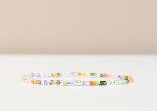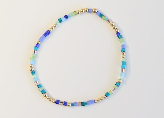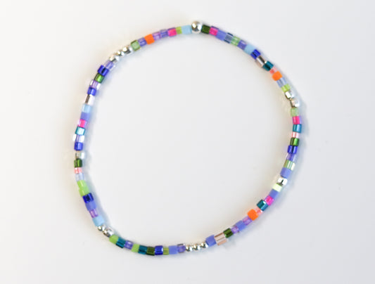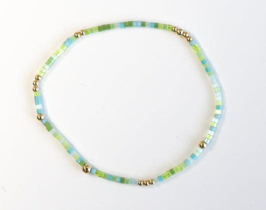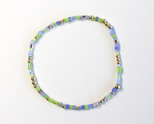 Periwinkle Lime 1:1 Glass Bead Bracelet